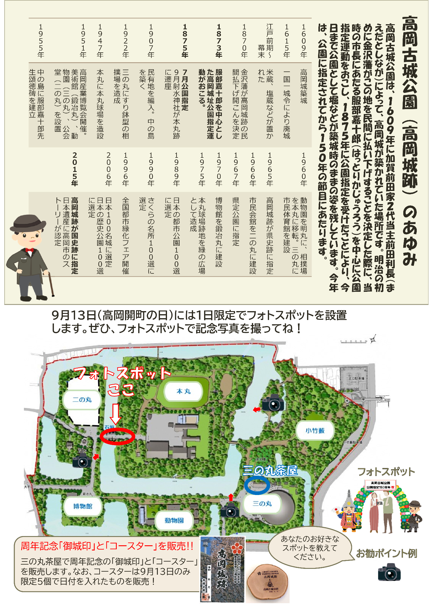 今年高岡城跡が公園指定されて150年の節目の年に当たります。