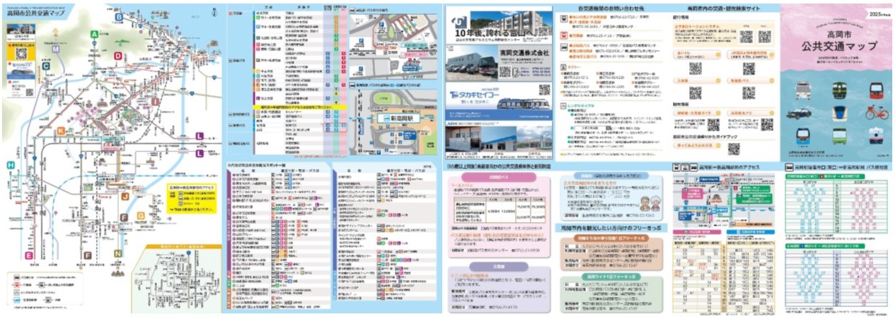 高岡市公共交通マップ 更新日:2025年11月06日 ページID : 6648 高岡市では、市民や県内外からの来訪者の利便性向上を図り、公共交通の利用促進を促すことを目的として、市内の各公共交通機関の情報や、観光地・公的施設などの最寄りの駅、電停、バス停をまとめた「高岡市公共交通マップ」を作成し、配布しています。 高岡市公共交通マップ2025年度秋版 (PDFファイル: 4.5MB) この記事に関するお問い合わせ先 総合交通課〒933-8601 富山県高岡市広小路7-50電話番号:0766-20-1139ファックス:0766-20-1414メールフォームによるお問い合わせ