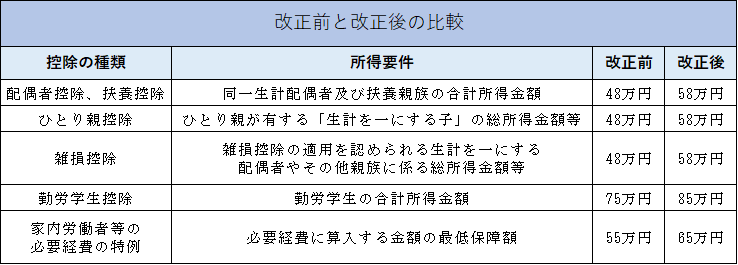 各種所得控除等の適用を受ける場合における所得要件額が10万円引き上げられます。