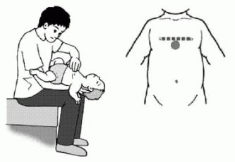 - (注意)乳児、明らかに妊娠している女性および高度の肥満者には行いません。背部叩打法のみを行います。