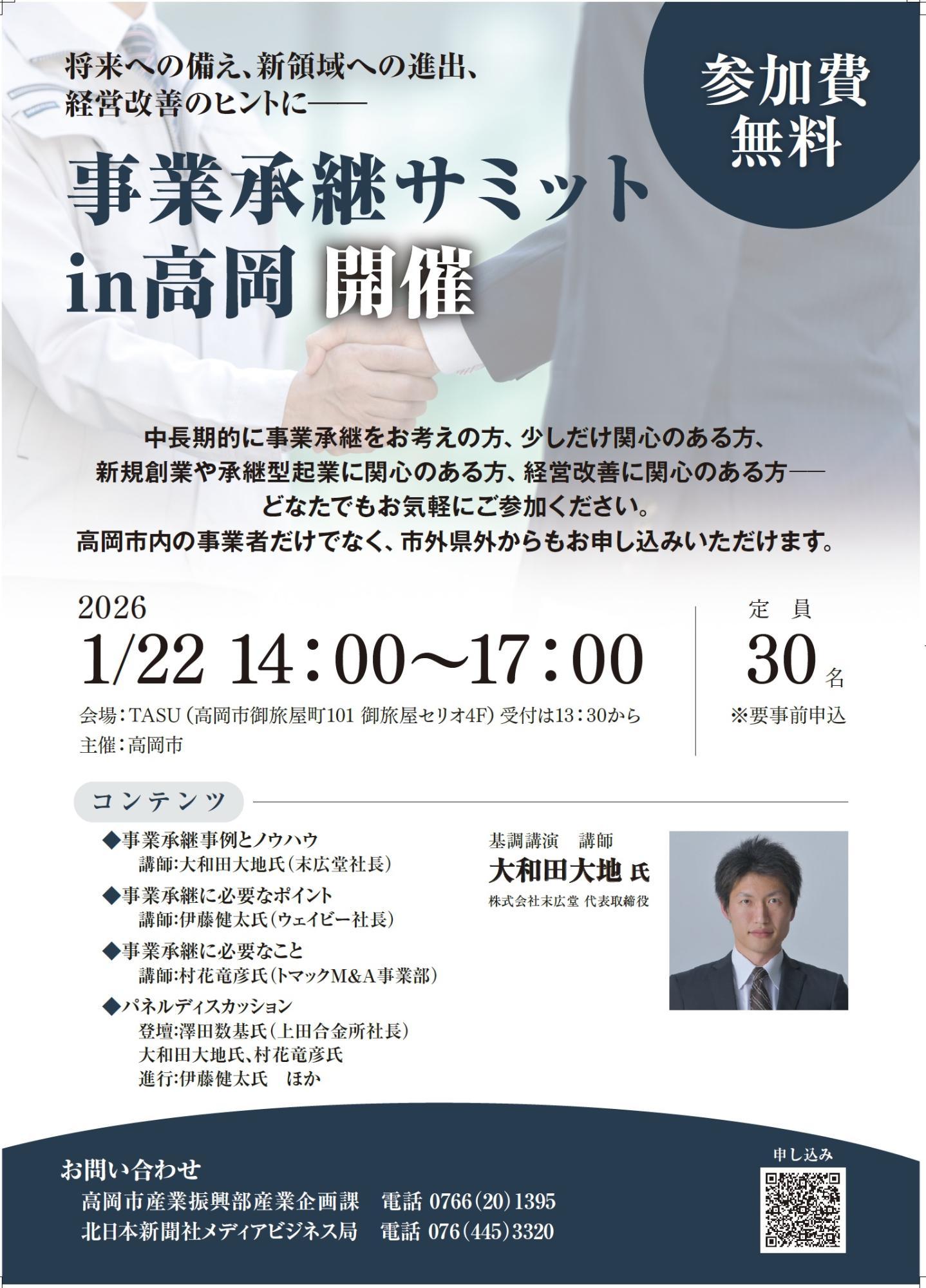 「事業承継サミットin高岡」を開催します