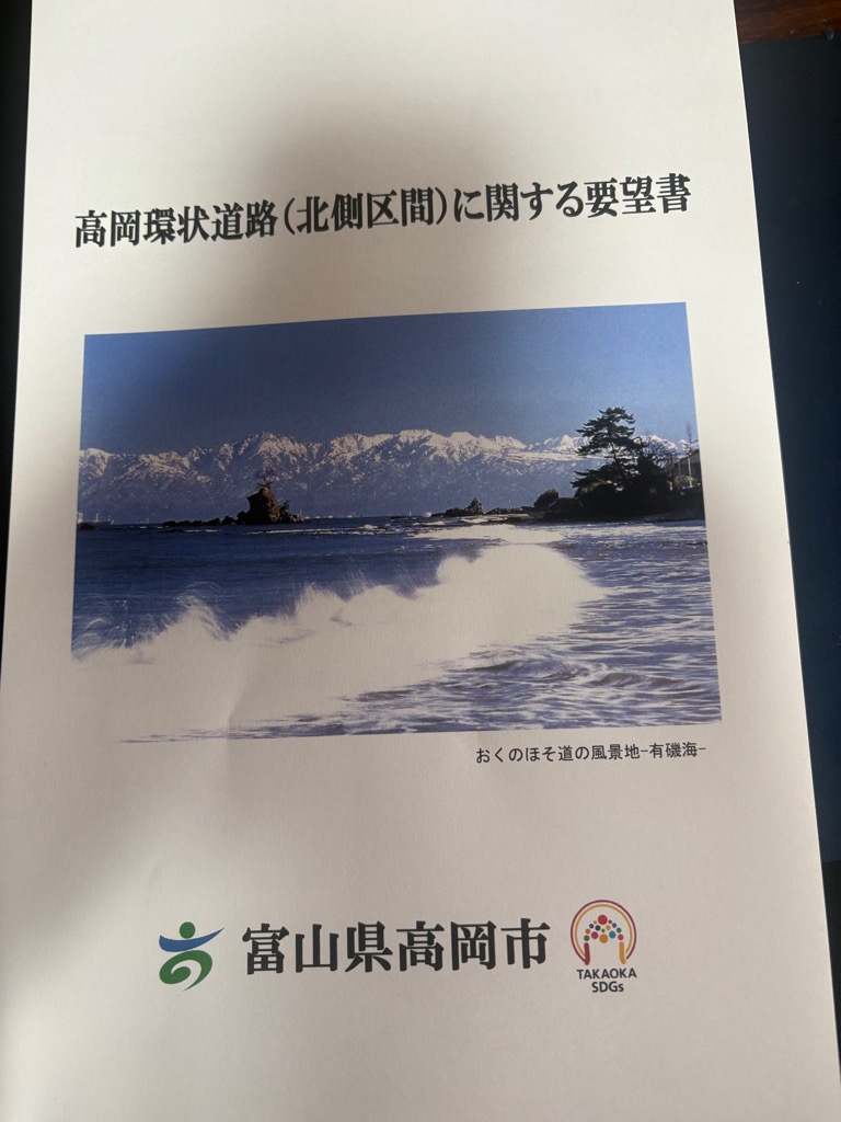 私は先日、国土交通省に高岡環状道路(北側区間)の整備について、要望してきました。実際の整備はどのタイミングになるのか、決まっていません。少しでも早くという思いで、要望しているのです。この道路は、高岡のまちづくりそのものに大きく貢献します。市内の渋滞が緩和されるのです。