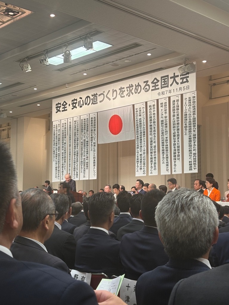 道路はまちづくりにとって、極めて重要です。だからこそ全国の自治体が道路整備の予算を獲得するため、血眼になっています。11月5日に東京で開かれた「安全・安心の道づくりを求める全国大会」は、そんな自治体が結集していました。参加した首長の数は1,112人です。殺気立つなか、私も参加しました。高岡環状道路(北側区間)を早期に整備するため、今後も汗をかかせていただきます。