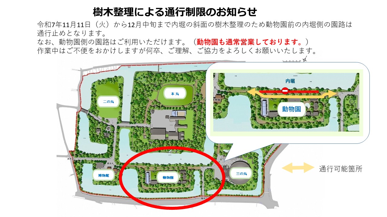 高岡古城公園動物園前の園路の通行制限のお知らせ