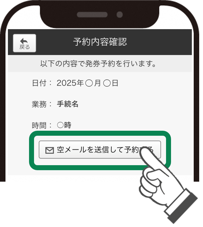 5.「空メールを送信して予約する」ボタンをクリックすると、メールソフトが起動しますので、空メールを送信します。