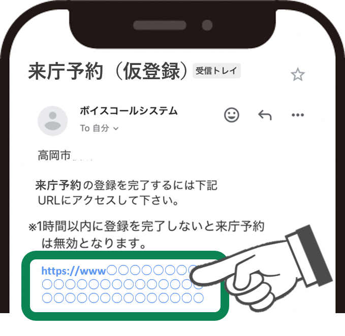 予約後に来庁できなくなった場合は、予約登録完了メールのURLより、必ずキャンセル手続きを行ってください。