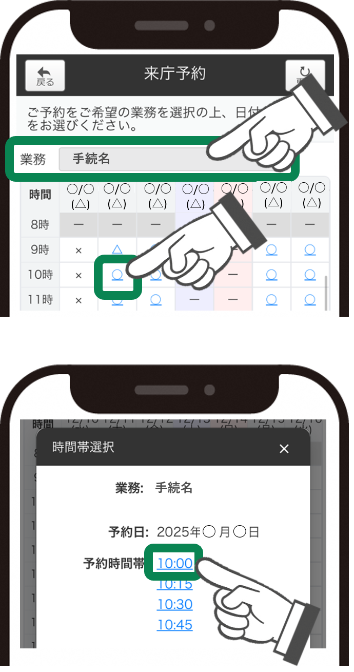 - 窓口の状況によっては、お呼びする時間が予約時間を過ぎる場合があります。
